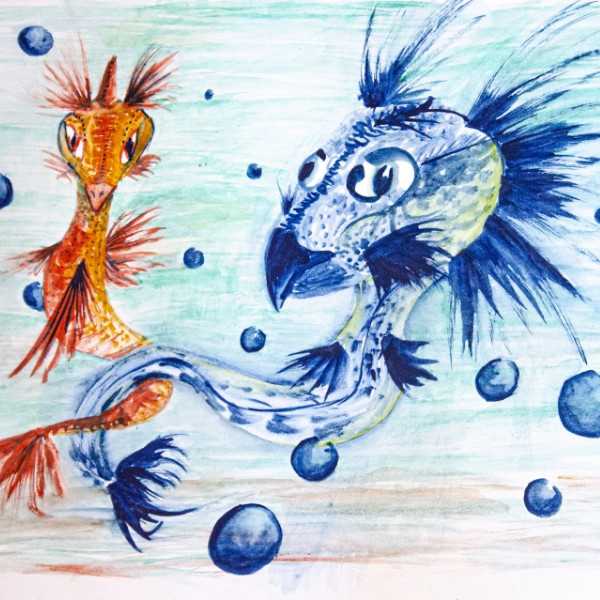 Peinture aquarelle de Jillian Monot, Monstres aquatiques