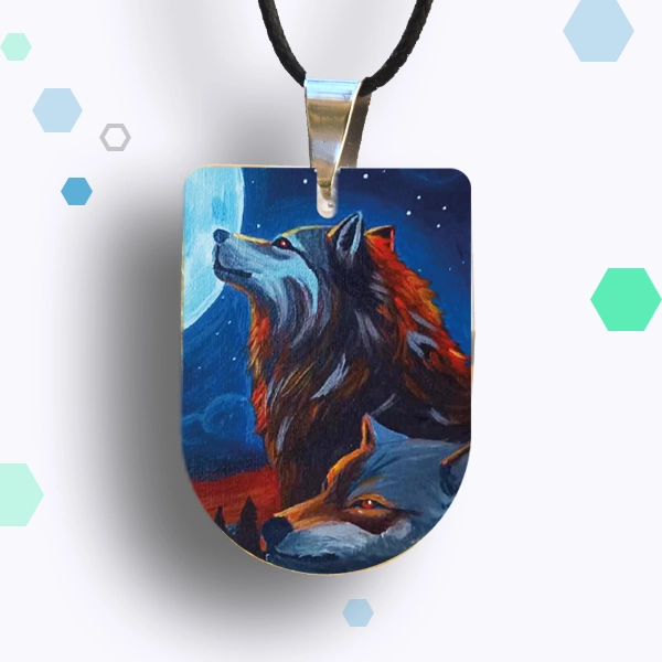 Bijoux en résine de Jillian Monot, couple de loup