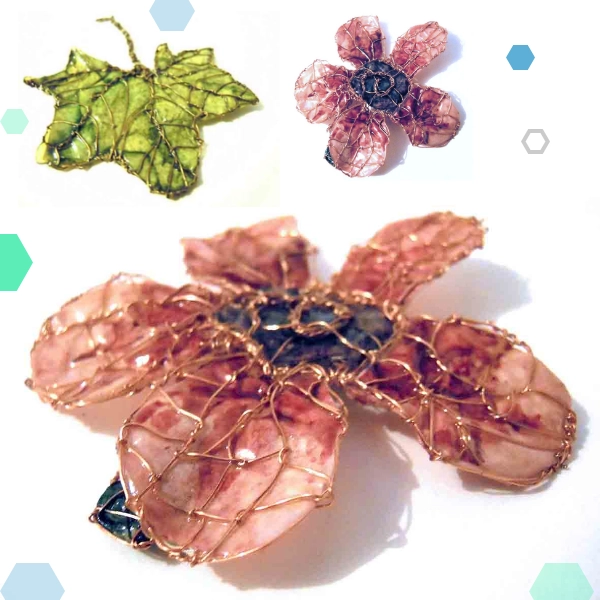 Création en fil de fer de Jillian Monot, Fleur et feuille
