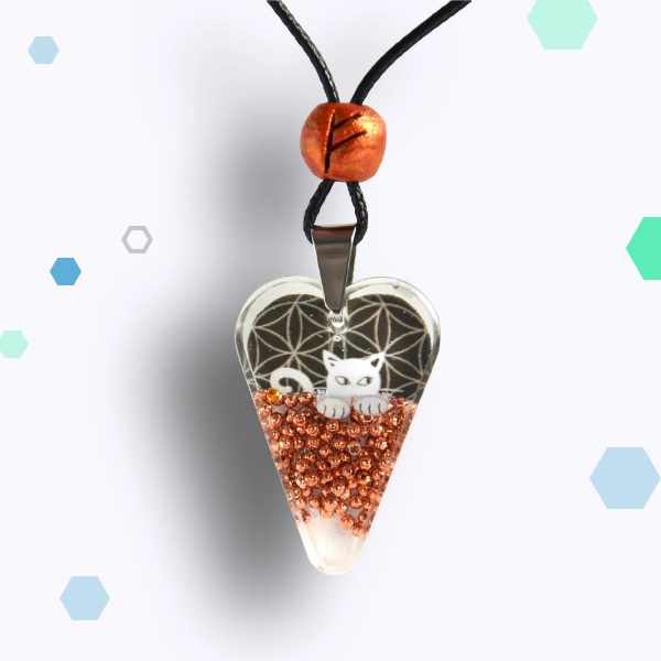 Bijoux en résine de Jillian Monot, chat blanc